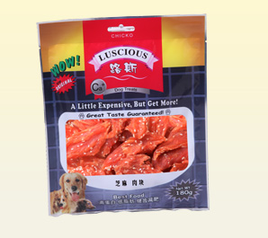 产品名称:芝麻肉块 规格型号:180g 每箱数量:30袋 公司网址:www.luspet.com